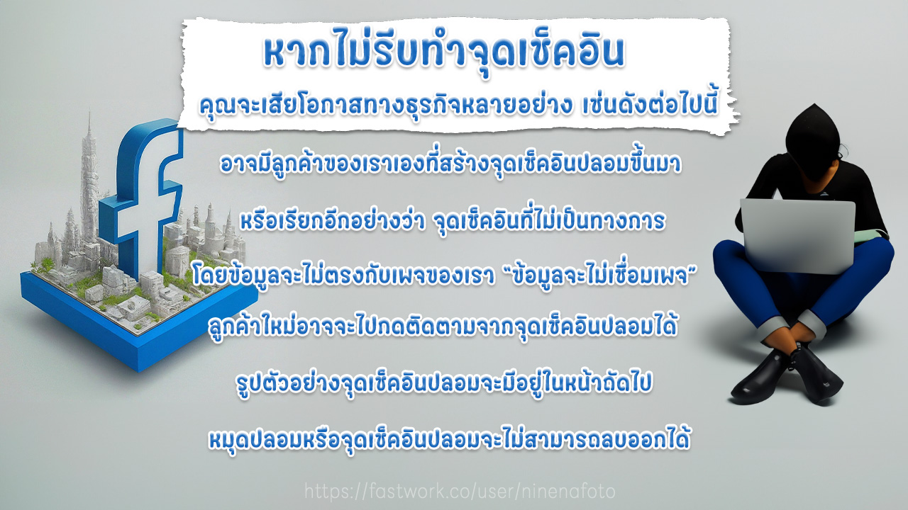 เป็นการช่วยเพิ่มการมองเห็นเพจ เพิ่มโอกาสในการซื้อสินค้าหรือมาร้านของคุณ แนะนำควรทำเช็คอินไว้ทั้งเฟสบุ๊ค(Facebook) และ ไอจี (instagram) เพราะลูกค้าหรือผู้คนส่วนใหญ่ต้องมีเเพลตฟอร์มทั้ง 2 อย่างนี้ หรืออย่างใดอย่างหนึ่งแน่นอน